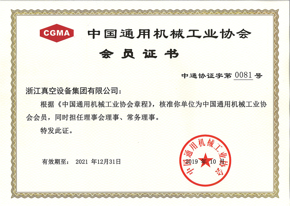 中國通用機械工業(yè)協(xié)會會員證書