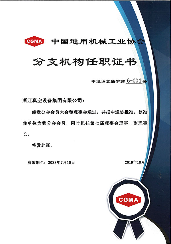 中國通用機械工業(yè)協(xié)會分支機構(gòu)任職證書
